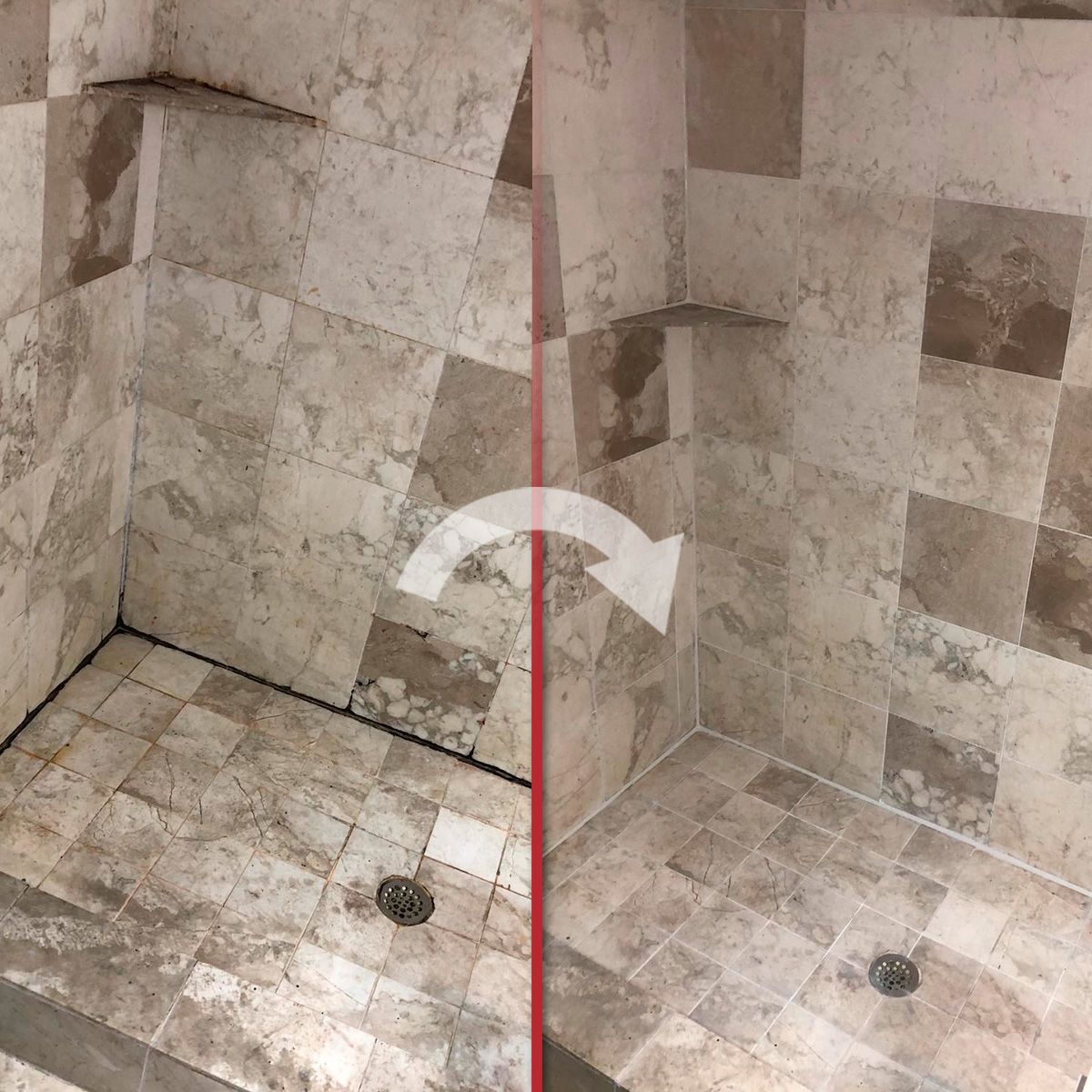 Thanks to our stone and #groutcleaning, #caulking, and sealing process this marble shower looks like new again! 😱